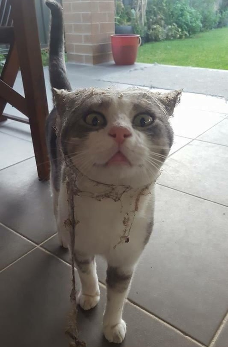 Скорее всего бедная кошка даже и подумать не могла, какую встречу с паутиной ей приготовила судьба-злодейка.