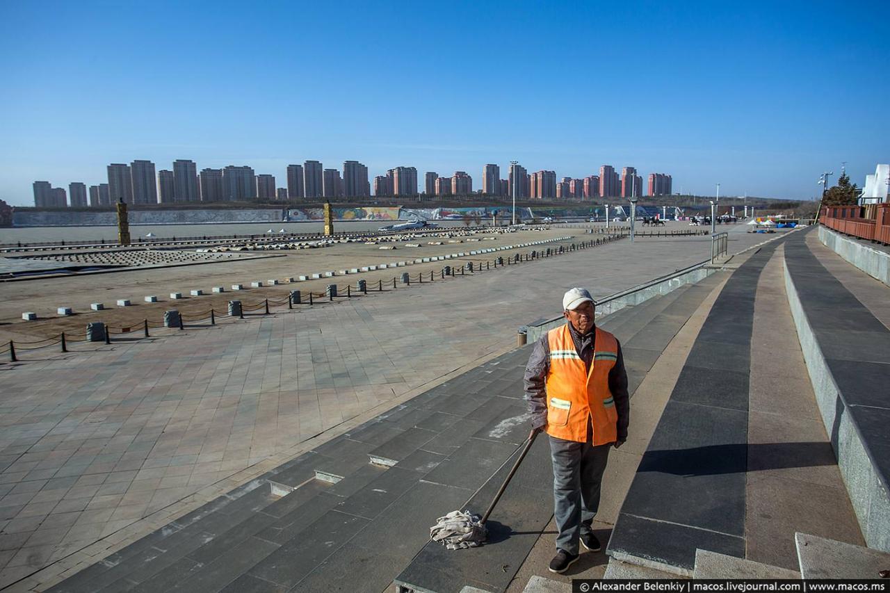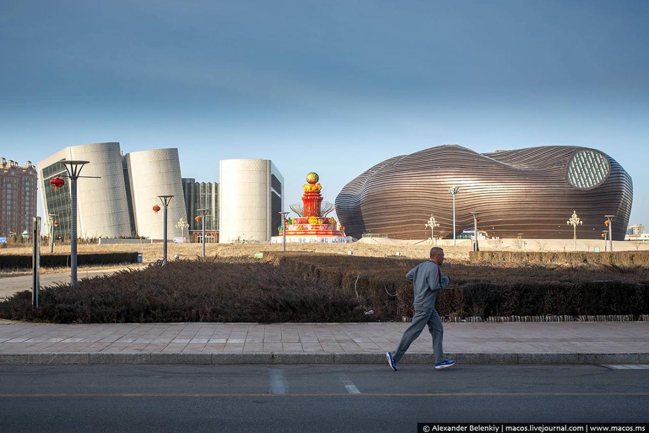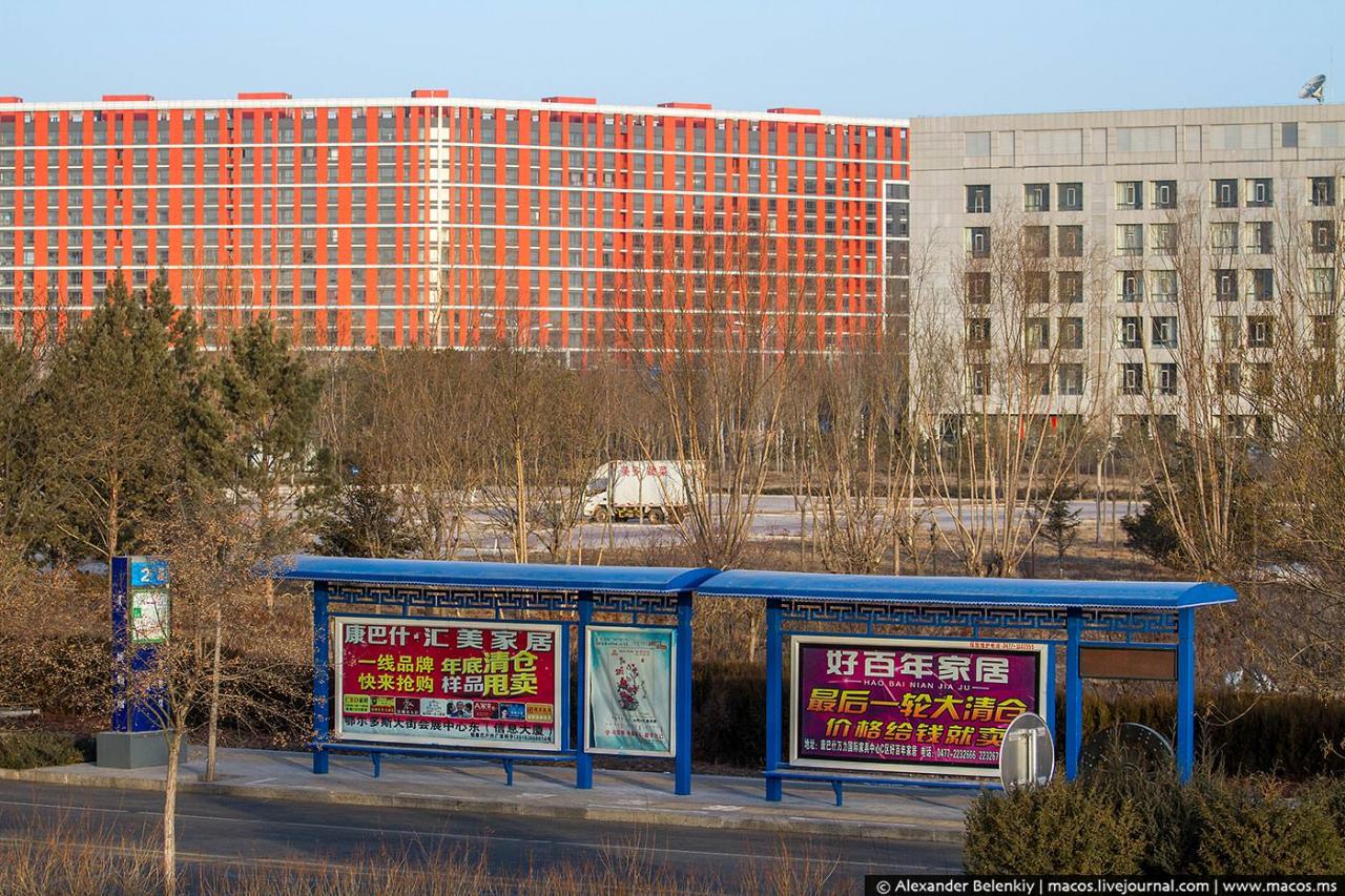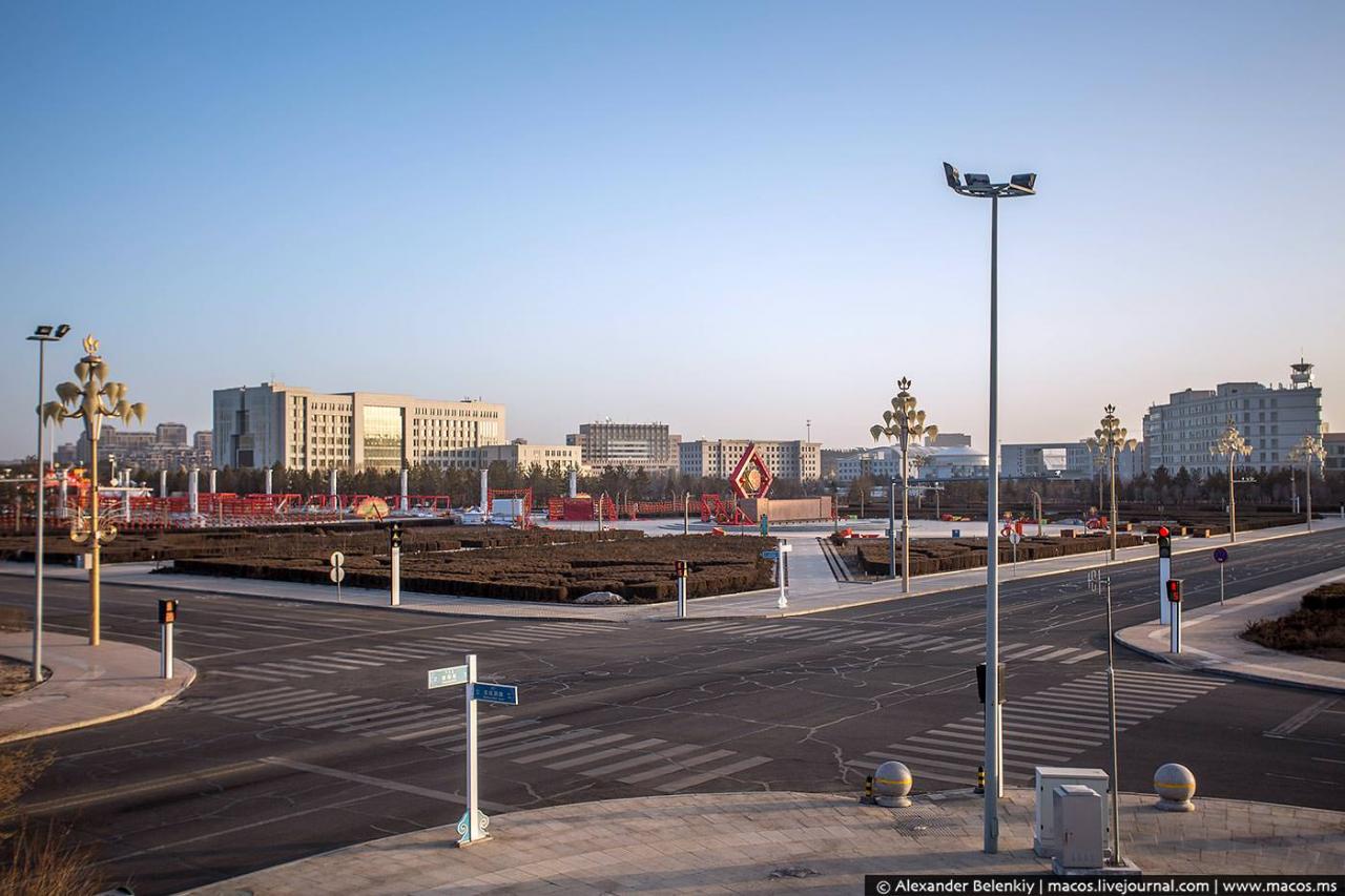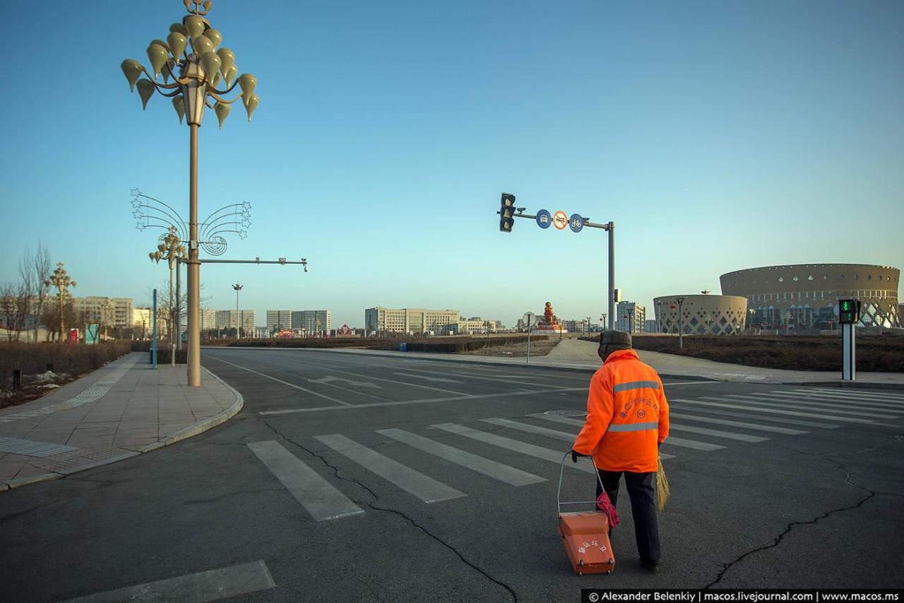 Кангбаши является крупнейшим городом-призраком во всем мире. Если хочется проникнуться в царящую здесь атмосферу, то будет достаточно представить мегаполис без единого человека. Лишь изредка можно увидеть техработников и дворников, так как они осуществляют контроль за территорией.