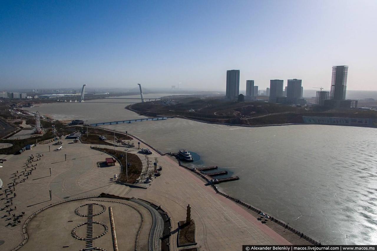 При перемещении по улицам города можно заметить парковку с велосипедами, но пока им не удалось дождаться своих хозяев. Инвесторам не было жалко денежных средств, поэтому большое количество парков и скульптур отличаются своим необычайным внешним видом.