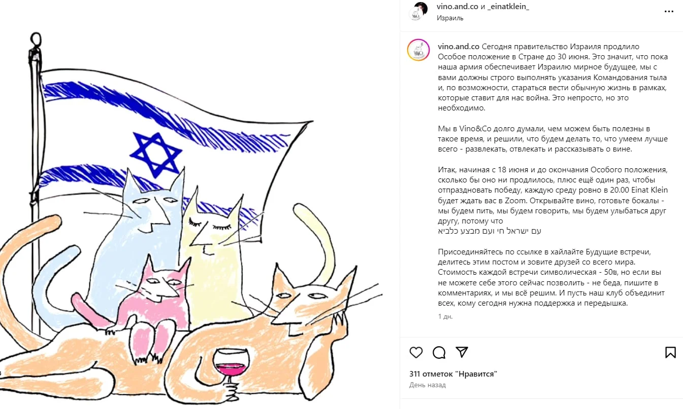 Супруга Андрея Макаревича, Эйнат Кляйн, решила выступить с обращением к аудитории, объяснив, чем они с мужем намерены заниматься в текущих обстоятельствах. По ее словам, они пришли к выводу, что будут использовать свои профессиональные навыки в сфере развлечений и винной культуры, чтобы внести вклад в общее состояние умов и эмоций.