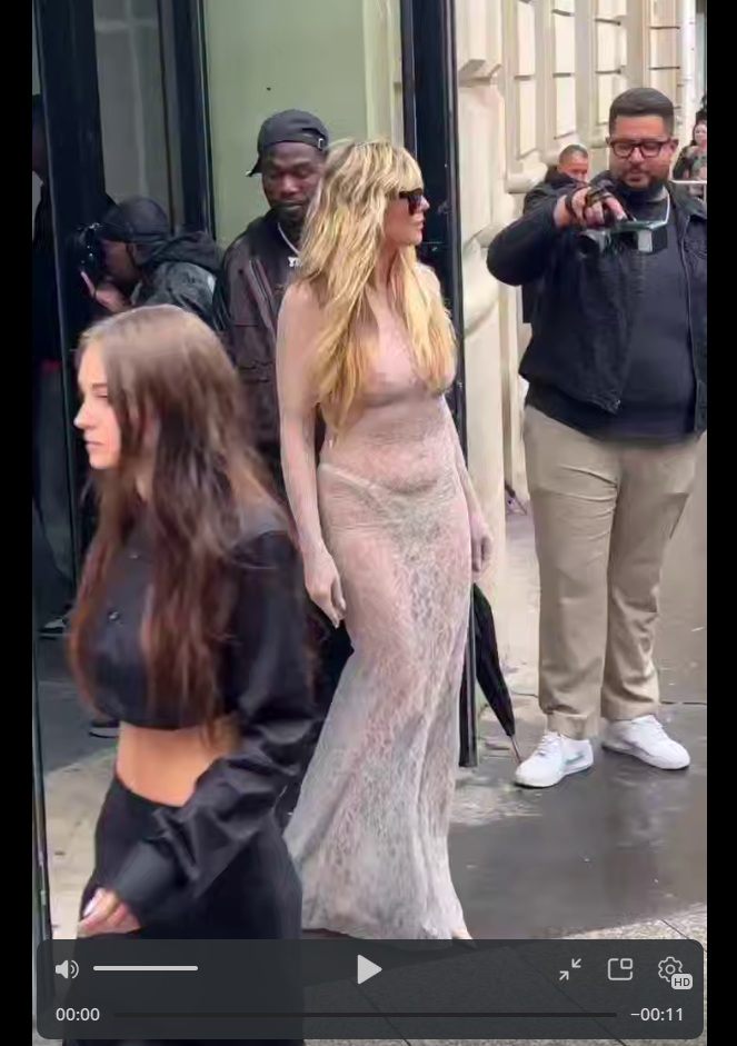 52-летняя Хайди Клум решила напомнить о себе и появилась на публике в прозрачном платье. Такой наряд она выбрала для посещения недели моды в Париже. Модель будто бы забыла надеть нижнее белье, хотя наряд у нее полностью просвещался. Поклонники весьма неоднозначно отреагировали на такое эффектное появление модели. Однако рядом с молодым мужем, который моложе ее на 17 лет, она выглядела гармонично.