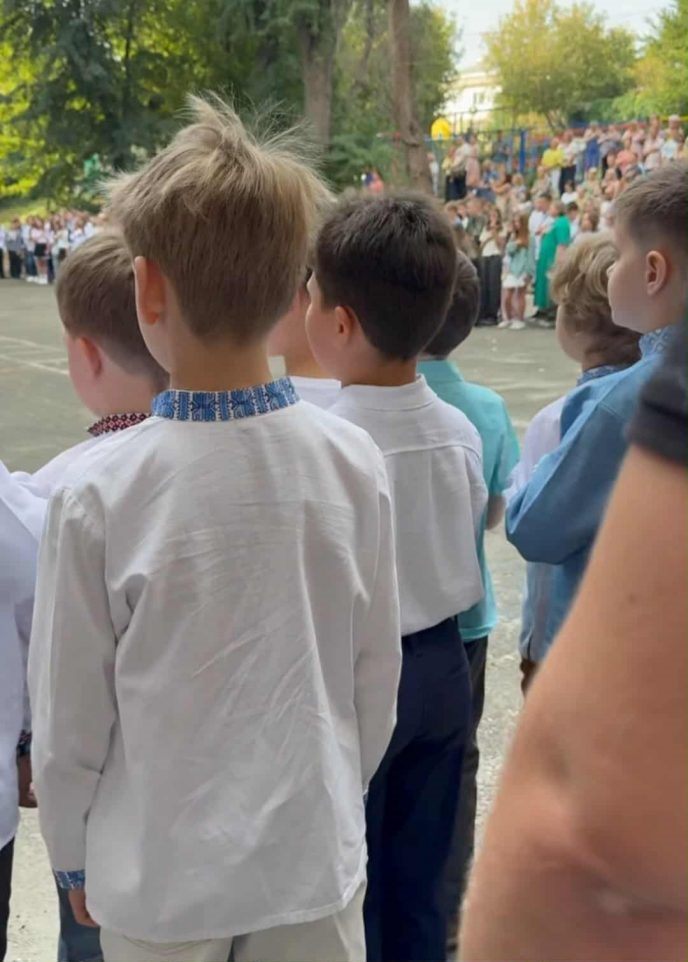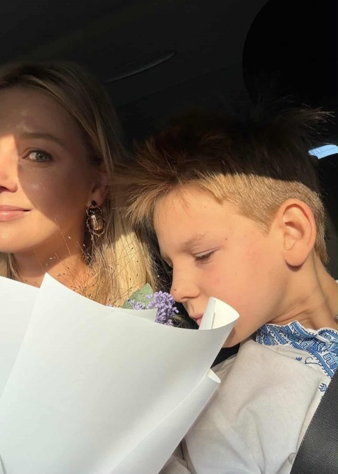 Л. Грешнова пришла на школьную линейку вместе с сыном и сразу оказалась в центре внимания поклонников. Наследник актрисы появился в вышиванке с национальными мотивами, а во дворе школы в это время звучал гимн Украины.